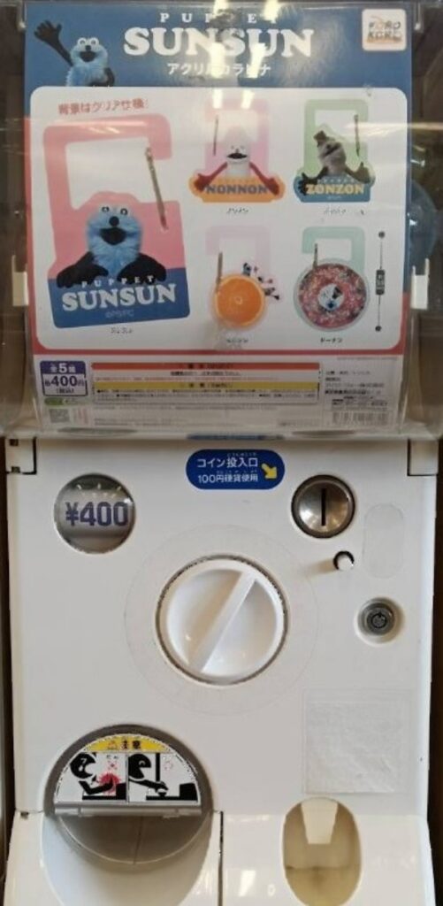 パペットスンスン アクリルカラビナは、全国のガチャガチャやガチャポン、ガチャなどで手に入れることができるカプセルトイで、全5種のラインナップです。