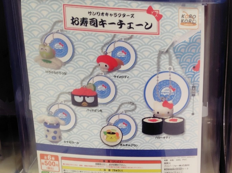 サンリオキャラクターズ お寿司キーチェーンの価格は各500円(税込)で、全国のガチャガチャやガチャポン、ガチャなどで手に入れることができます。