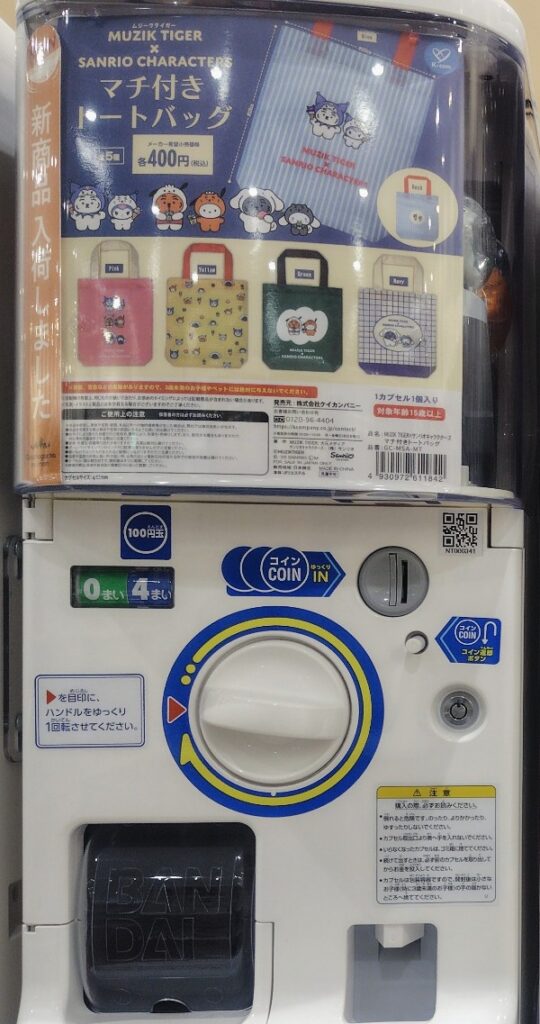 MUZIK TIGER×SANRIO CHARACTERS マチ付きトートバッグは、全国のガチャガチャやガチャなどで手に入れることができるカプセルトイで、全5種のラインナップです。
