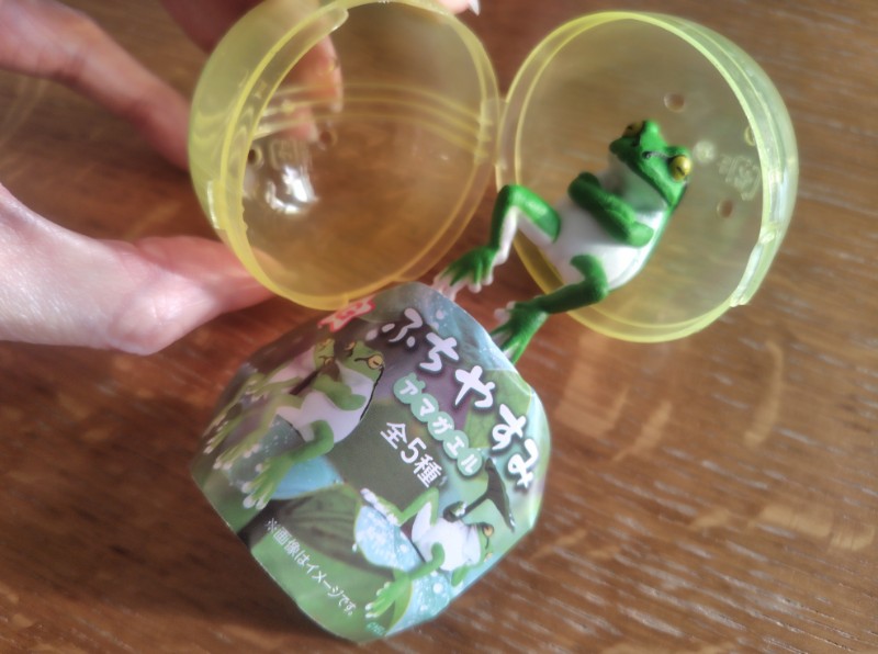 ふちやすみ アマガエルは、リアルな造形とカエルたちの可愛いポーズが楽しめるカプセルトイで、全5種のラインナップです。
