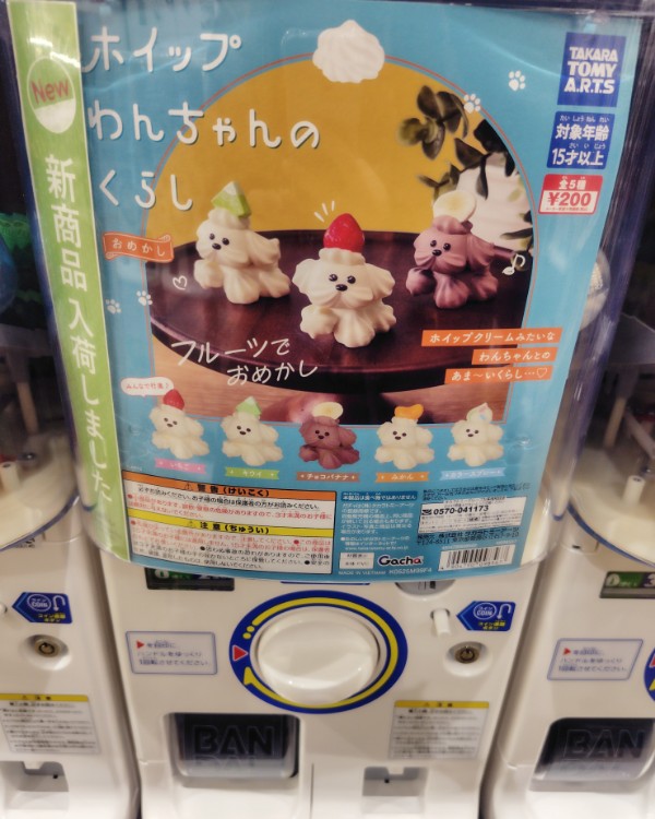ホイップわんちゃんのくらし おめかしは、全国のガチャガチャやガチャポン、ガチャなどで手に入れることができるカプセルトイで、全5種のラインナップです。