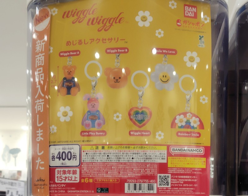 wiggle wiggle めじるしアクセサリーの価格は各400円(税込)で、全国のガシャポンやガチャガチャ、ガチャポン、ガチャなどで手に入れることができます。