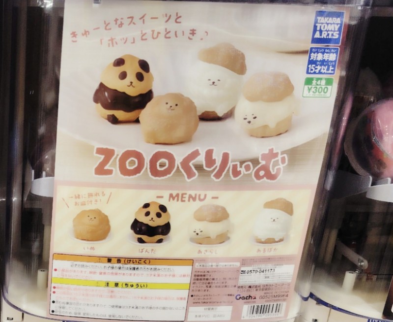ZOOくりぃむは、かわいい動物たちのビジュアルの特徴を活かし、おいしそうなシュークリームに仕上げたキュートなフィギュアのカプセルトイです。